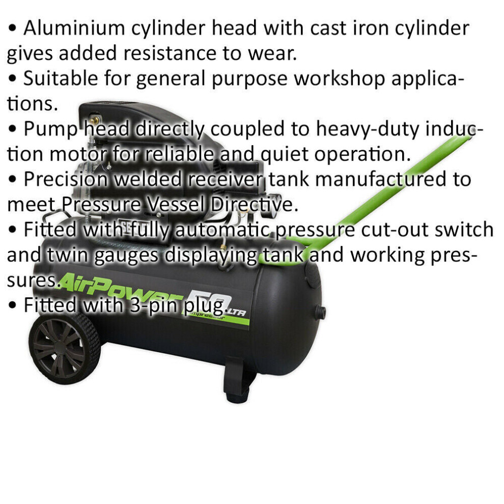 Direct Drive Air Compressor - 50L Capacity Tank - 2hp Induction Motor - 230V Description