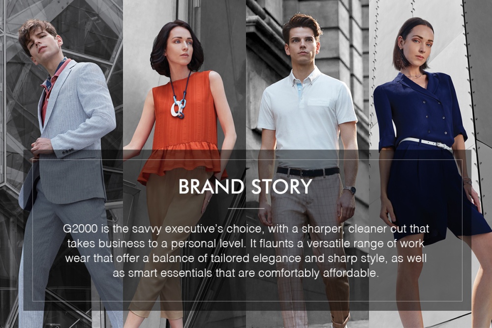 G2000 is the leading urban workwear brand from Hong Kong with the solid reputation for excellence in quality and fit, and value for money. G2000 offers an assortment of men’s and women’s apparel in a wide range from smart to relax work style. As well as, G2000 incorporated leading technology and innovation into style to enable all comfortable to every working lifestyles.